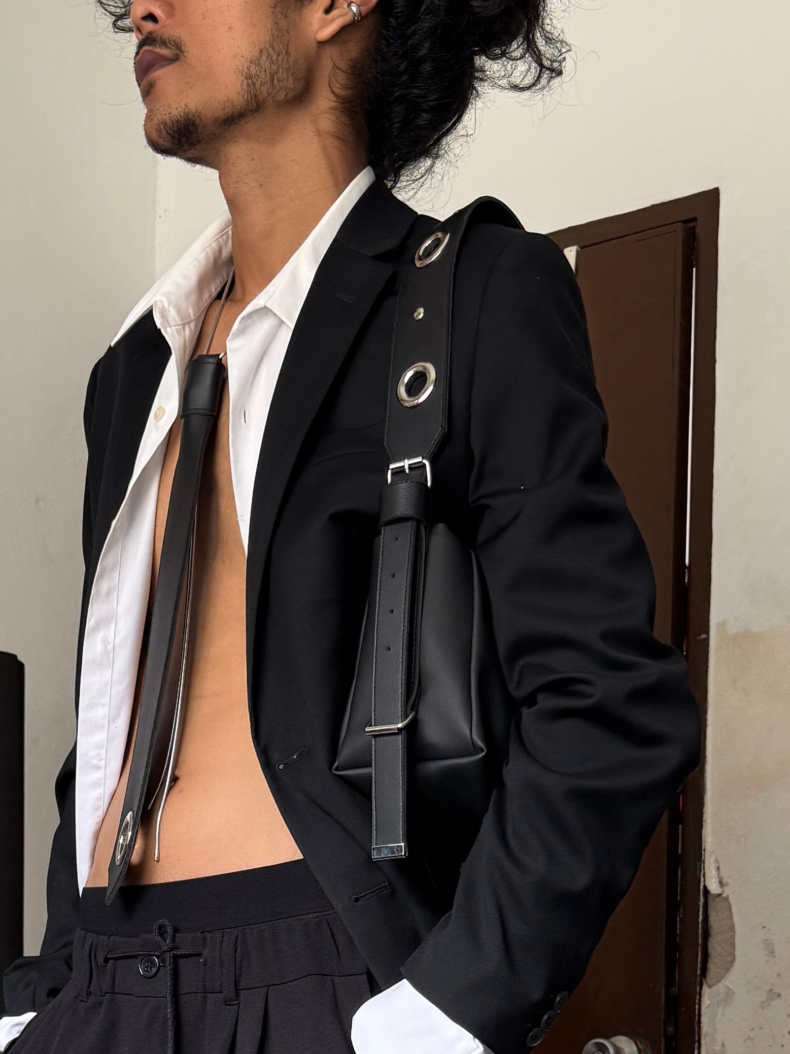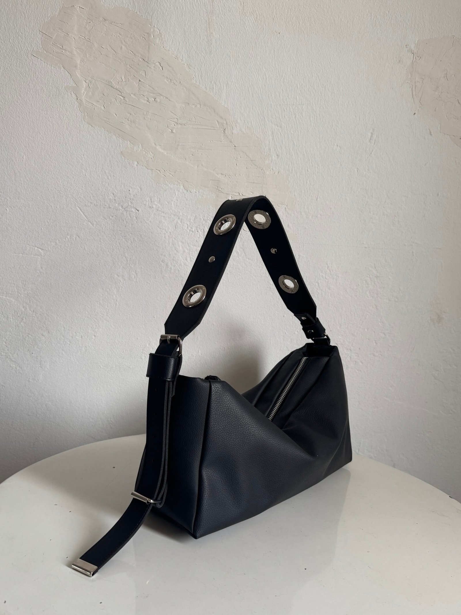 Personalize your bag with this stylish shoulder strap, designed to reflect your unique taste. It features large steel eyelets that add a bold, edgy touch of sophistication to your accessory.